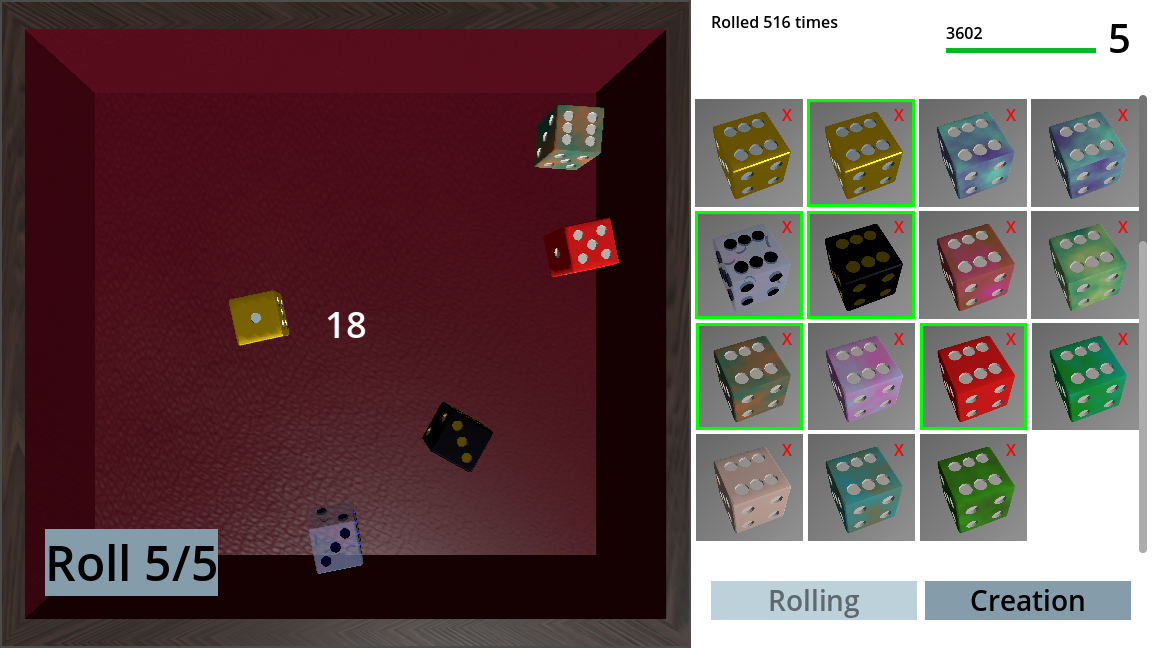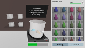 In this small game made for Mini Jam 199 you roll dice to gain resin to make new dice. Level up to roll more dice at once and to get better resin.